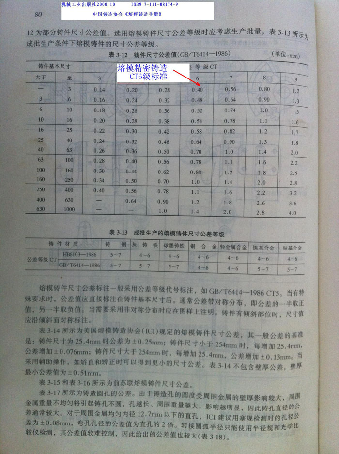 硅溶膠熔模鑄件尺寸公差CT6級(jí)